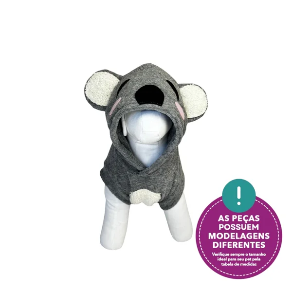 Cada ponto dessa peça foi pensado com carinho. O capuz com orelhinhas, focinho e bochechas cor-de-rosa transformam seu pet em um verdadeiro coala! O acabamento reforçado e a modelagem anatômica garantem durabilidade e muito estilo — seja para um passeio ou um clique divertido.