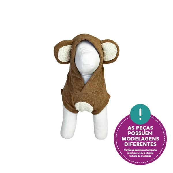 Capuz com orelhas peludinhas, rabinho e barriguinha de urso: tudo pensado para transformar seu pet no personagem mais adorável do passeio. A modelagem permite fácil vestibilidade e o caimento é impecável no corpo dos pets.