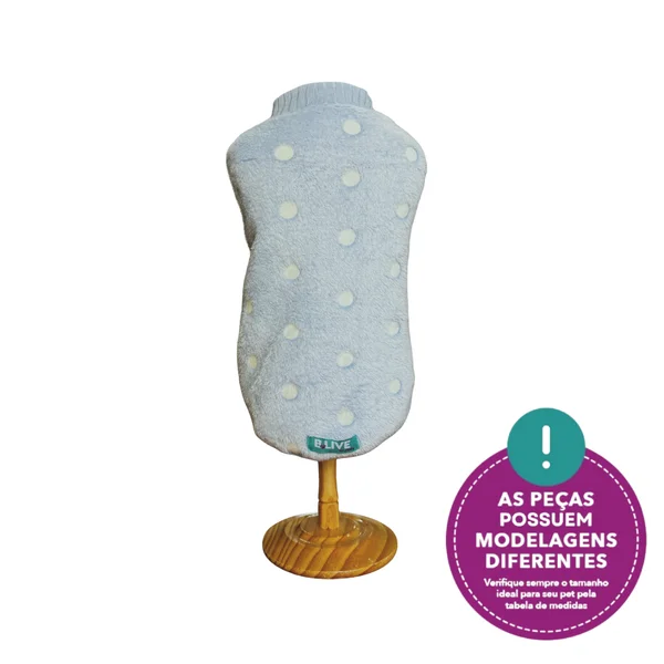 Cada pet é único! Para garantir o melhor ajuste, consulte nossa tabela de medidas disponível nas imagens do produto. Algumas peças podem apresentar pequenas variações de tamanho, pois desenvolvemos nossos modelos pensando em atender pets de diferentes portes e formatos corporais, sempre priorizando conforto e estilo.