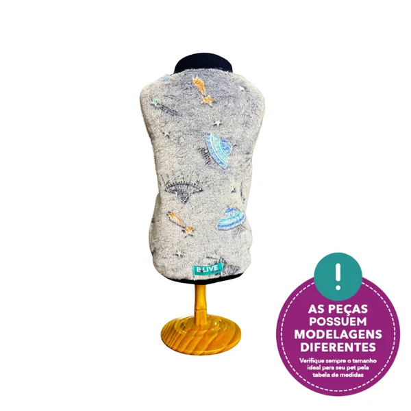 Cada pet é único! Para garantir o melhor ajuste, consulte nossa tabela de medidas disponível nas imagens do produto. Algumas peças podem apresentar pequenas variações de tamanho, pois desenvolvemos nossos modelos pensando em atender pets de diferentes portes e formatos corporais, sempre priorizando conforto e estilo.