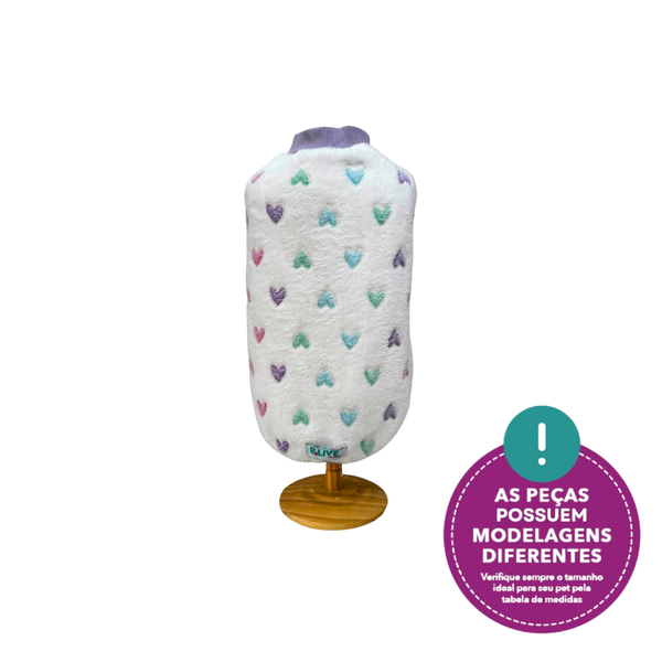 Cada pet é único! Para garantir o melhor ajuste, consulte nossa tabela de medidas disponível nas imagens do produto. Algumas peças podem apresentar pequenas variações de tamanho, pois desenvolvemos nossos modelos pensando em atender pets de diferentes portes e formatos corporais, sempre priorizando conforto e estilo.