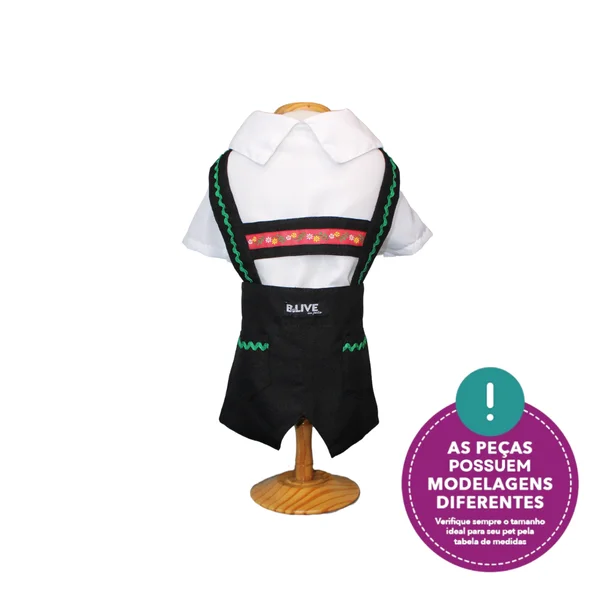 Detalhes com sianinha e grega dão um toque artesanal e cultural ao traje, remetendo ao charme das tradições germânicas. Os fechos com botões de pressão garantem praticidade na hora de vestir, enquanto o design impecável proporciona um ajuste perfeito e elegante.